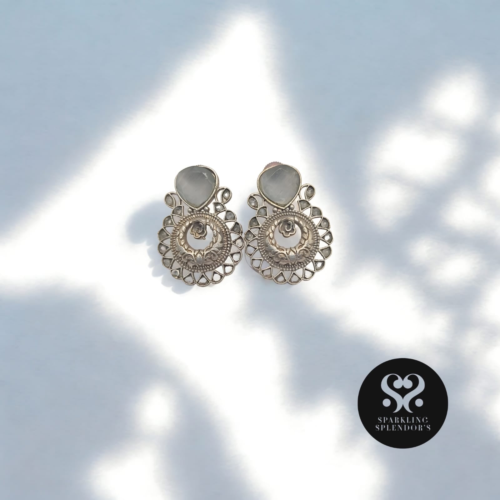 Add a touch of timeless charm to your look with these antique-style earrings featuring a delicate floral motif and a shimmering aqua gemstone accent. The intricate filigree design, paired with the soft blue stone, makes them perfect for both traditional and modern outfits. Lightweight, elegant, and versatile — a must-have piece for your jewelry collection.