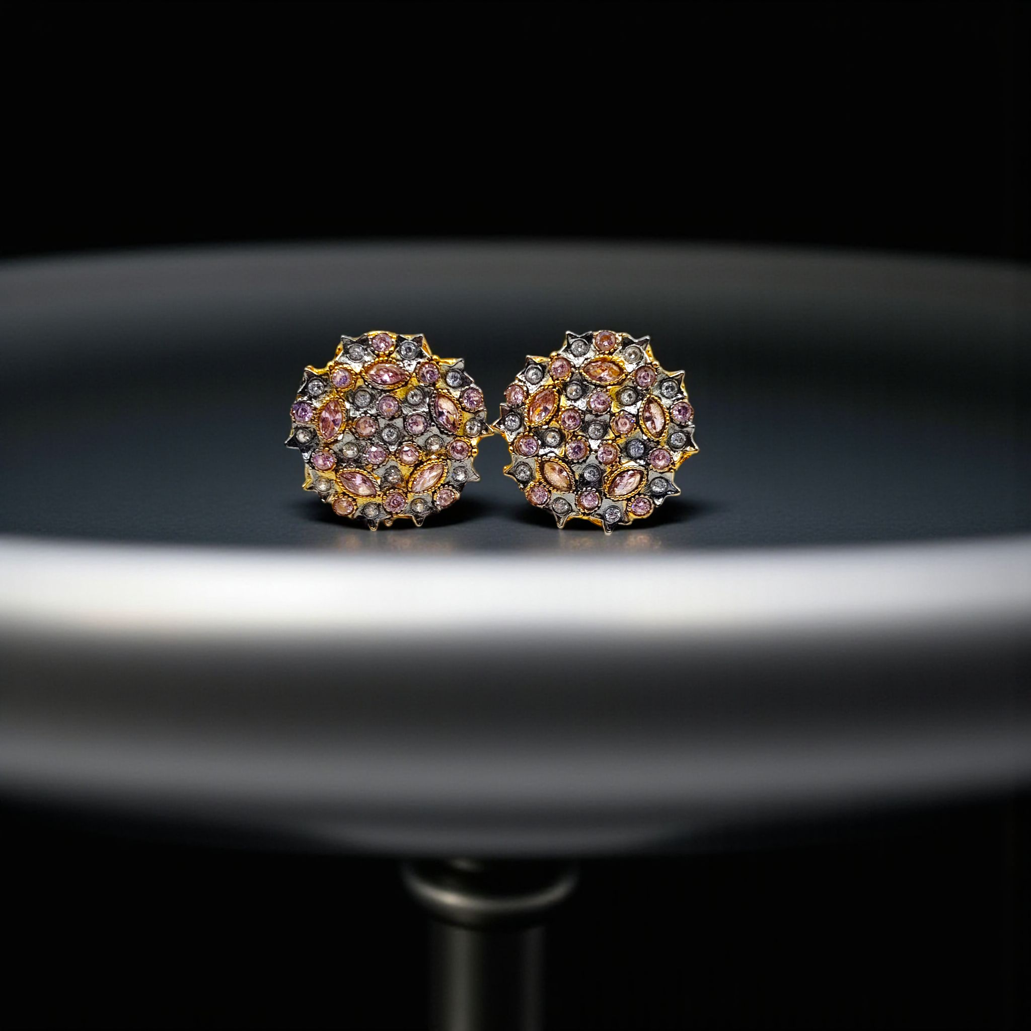 Soft pink , red and crystal floral studs for a feminine and graceful touch.