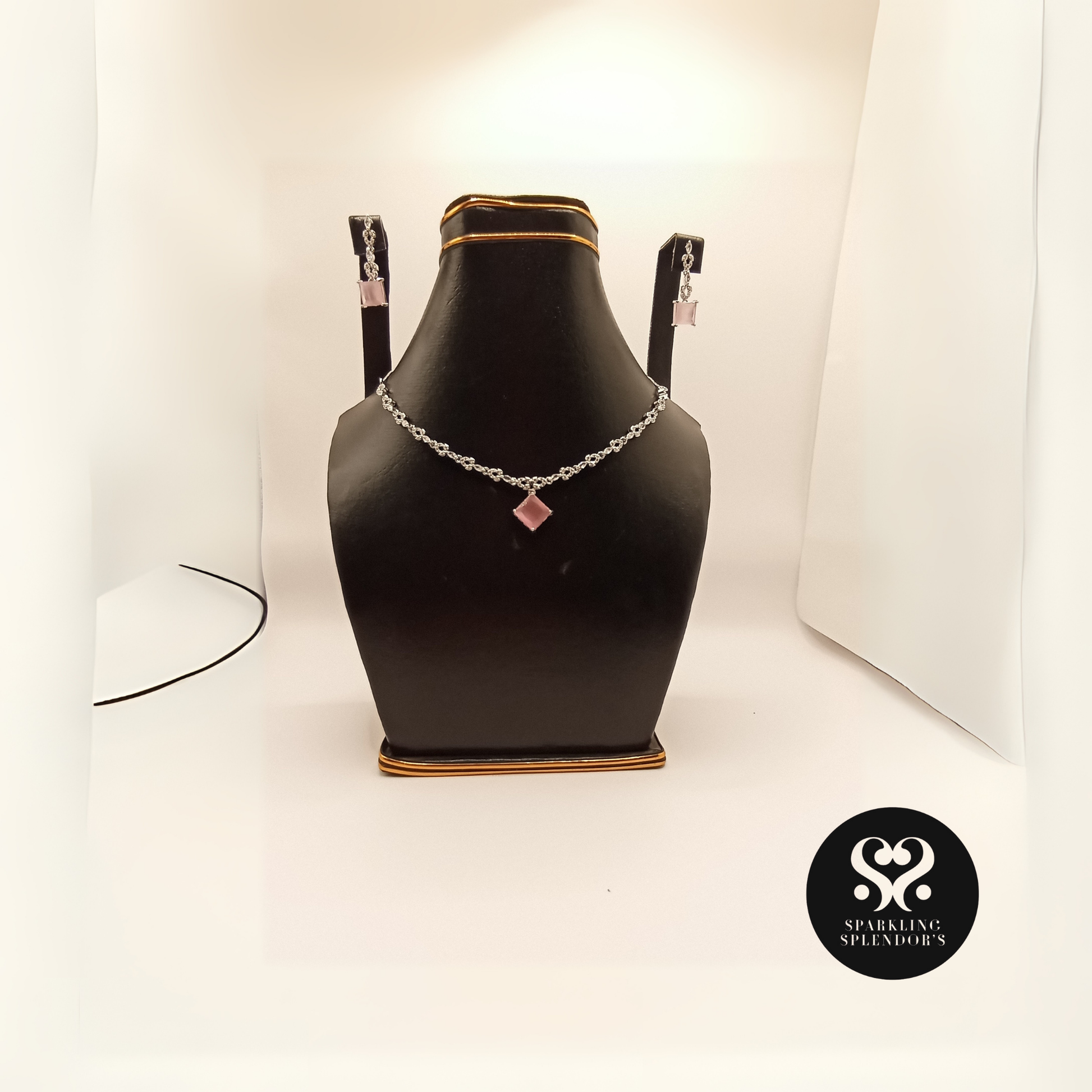 Radiate soft elegance with the Blush Crystal Charm Set. This lovely design features a square crystal pendant resting on a sparkling silver-tone chain, paired with matching earrings for a complete, feminine finish.