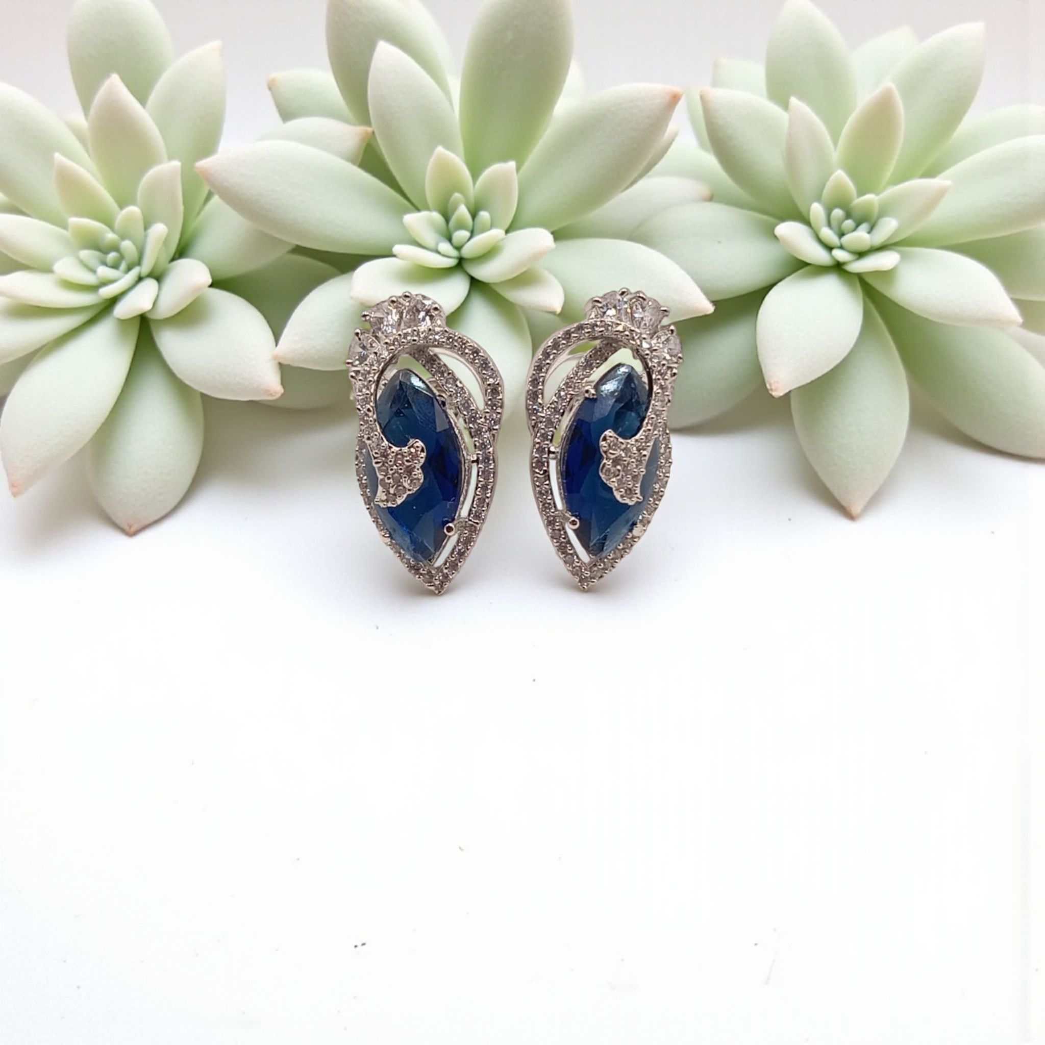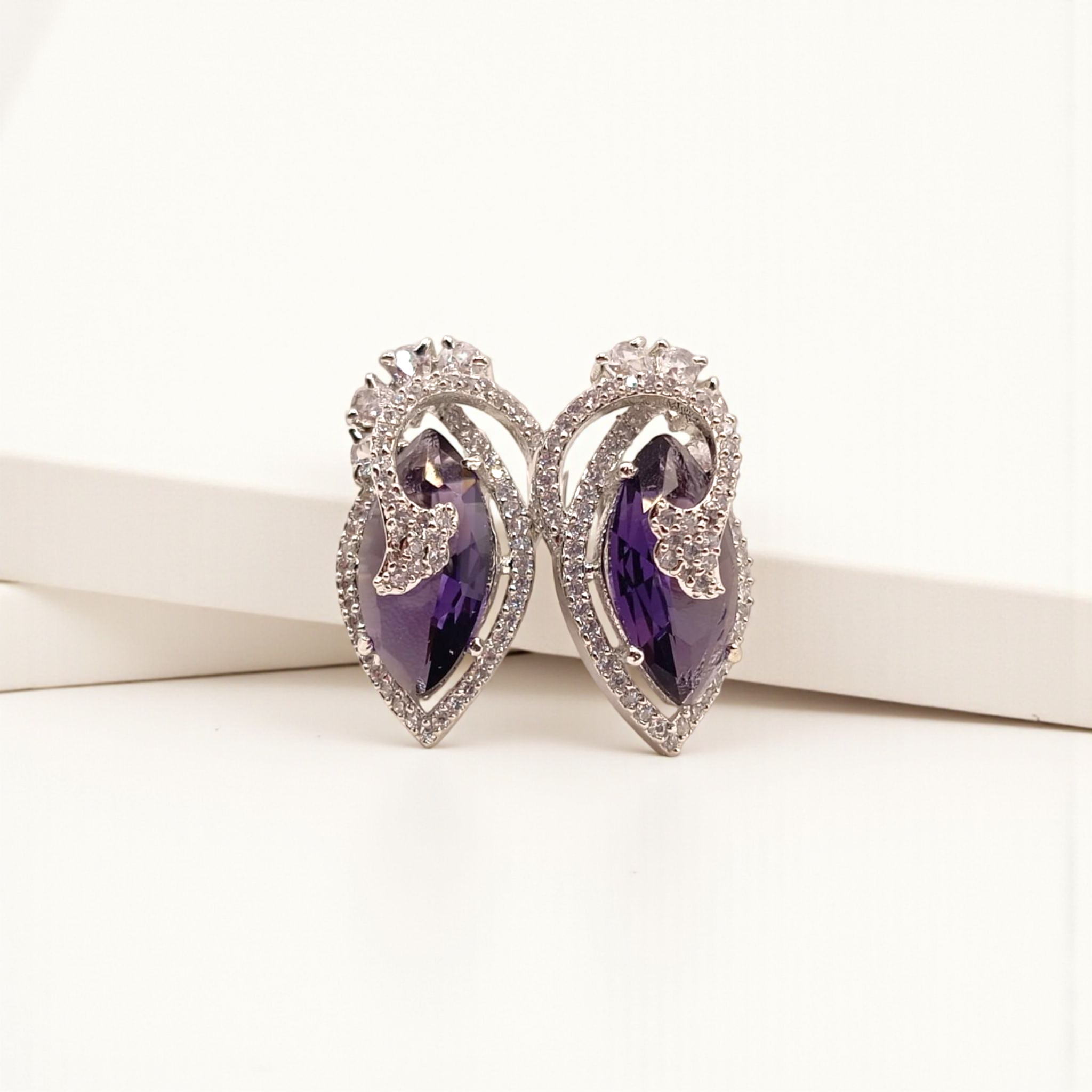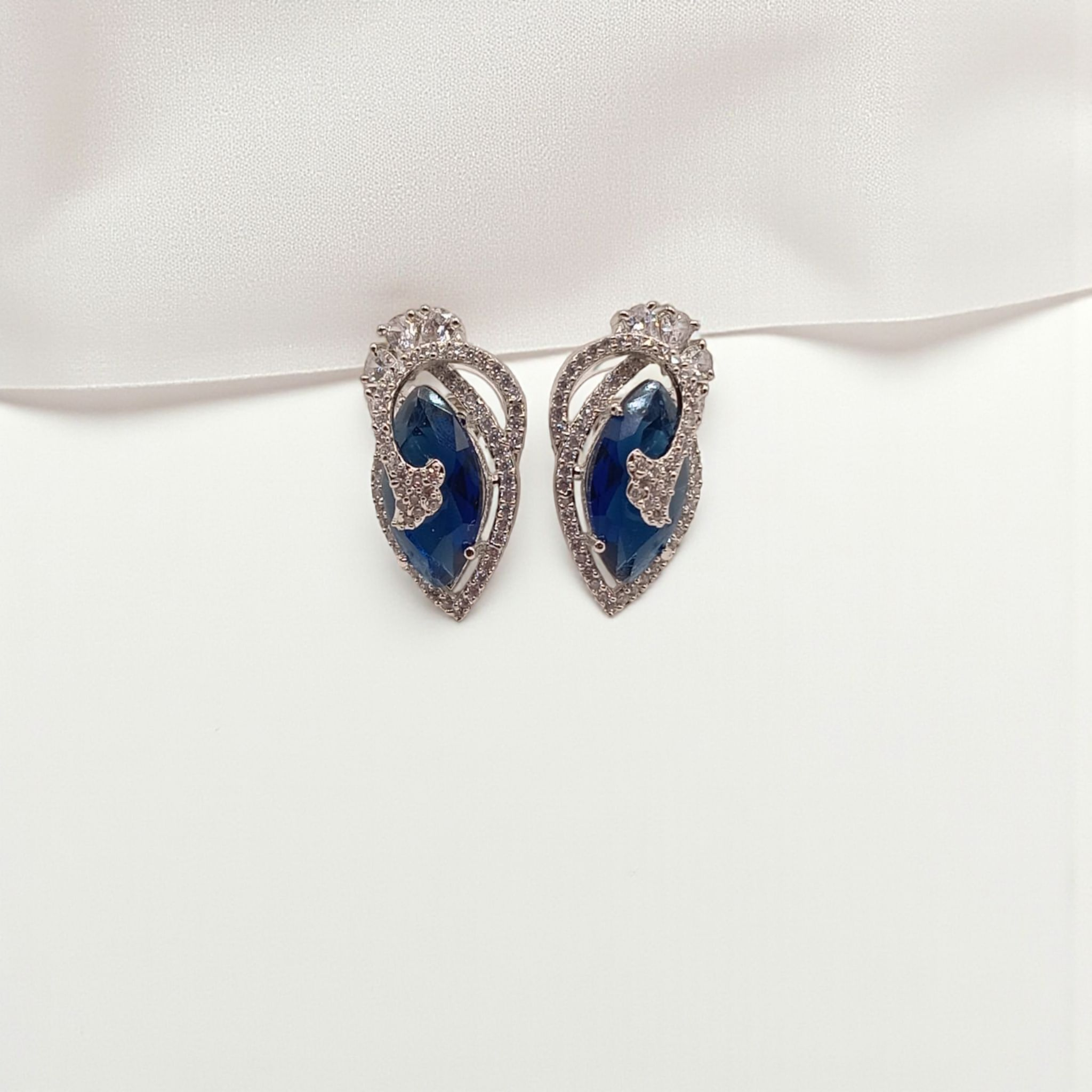 Dazzling stud earrings featuring a soft pink marquise-cut stone framed with sparkling crystals in a graceful swirl design. Perfect for weddings, evening wear, or adding a feminine touch to your style.