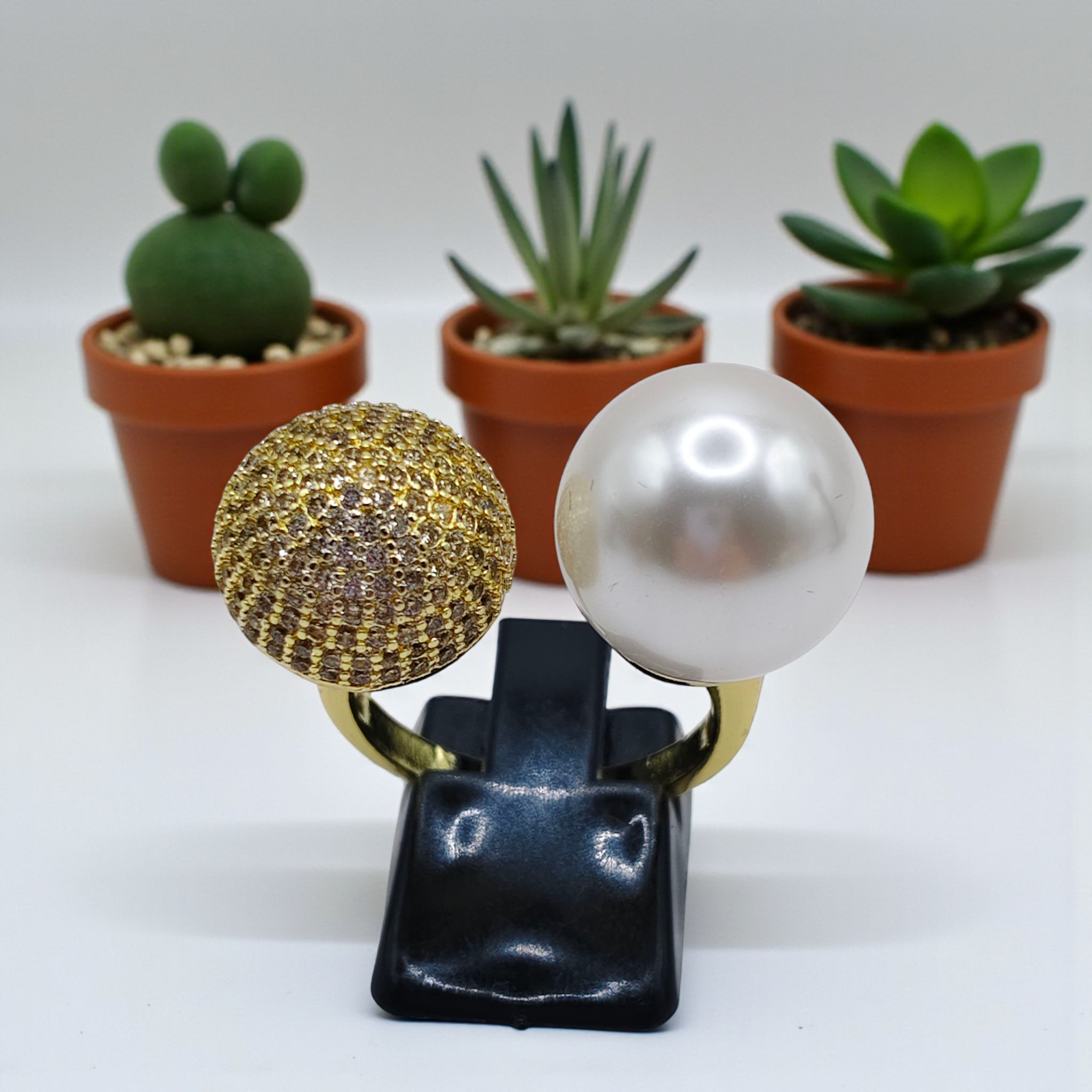 A striking duo of timeless beauty—this set features one ring adorned with a luminous pearl and another with a dome encrusted in shimmering crystals. Mounted on a sleek band, these rings bring a perfect balance of classic elegance and bold sparkle. Ideal for gifting or elevating your own accessory collection.