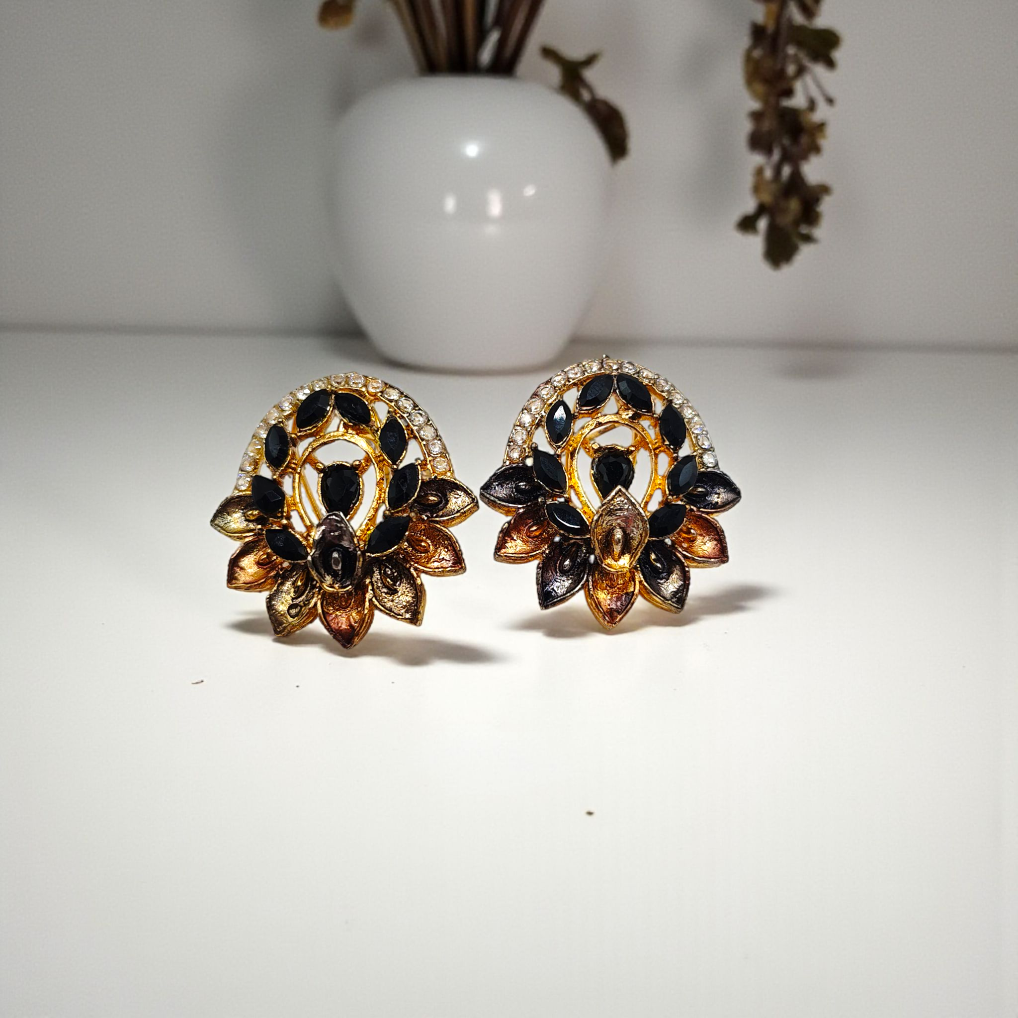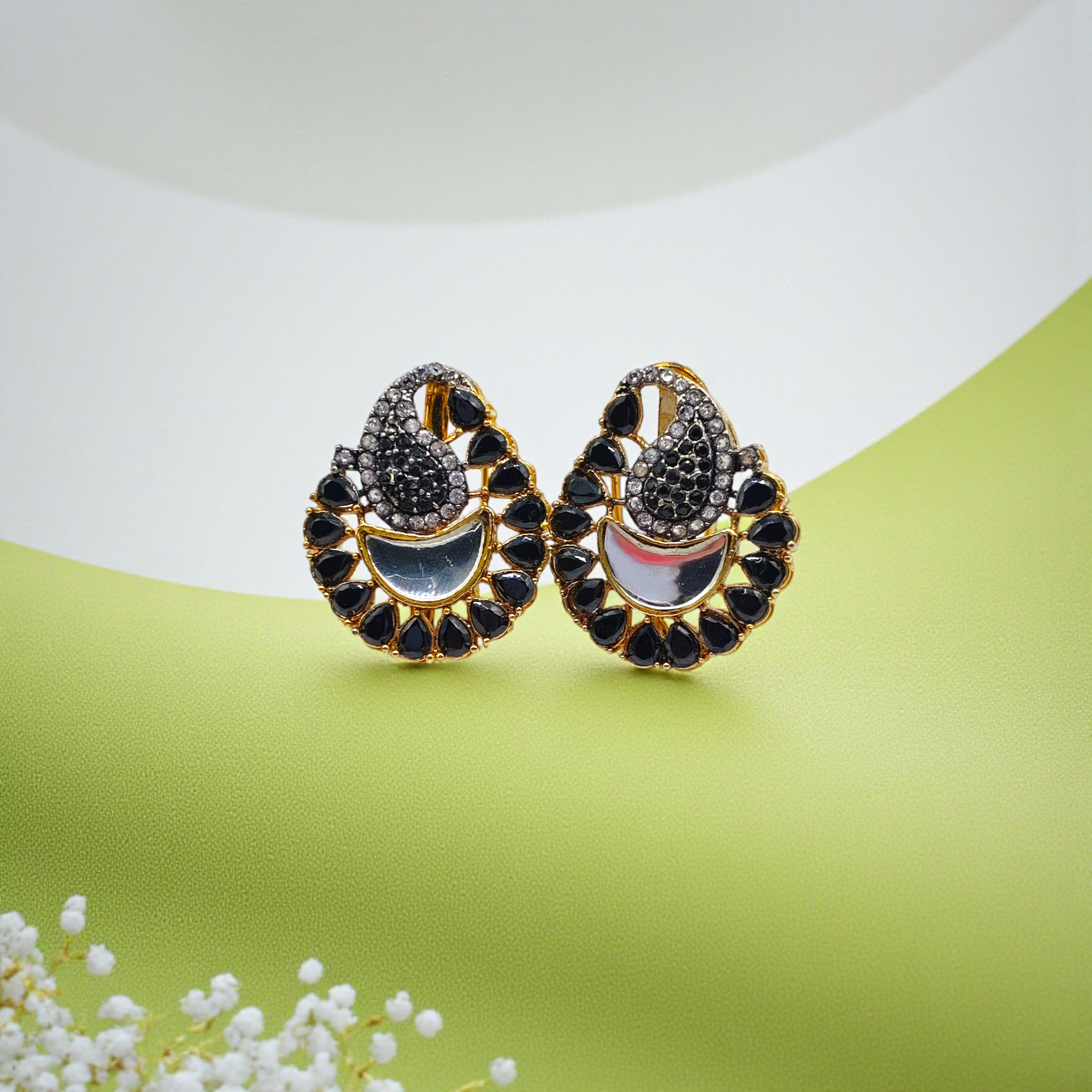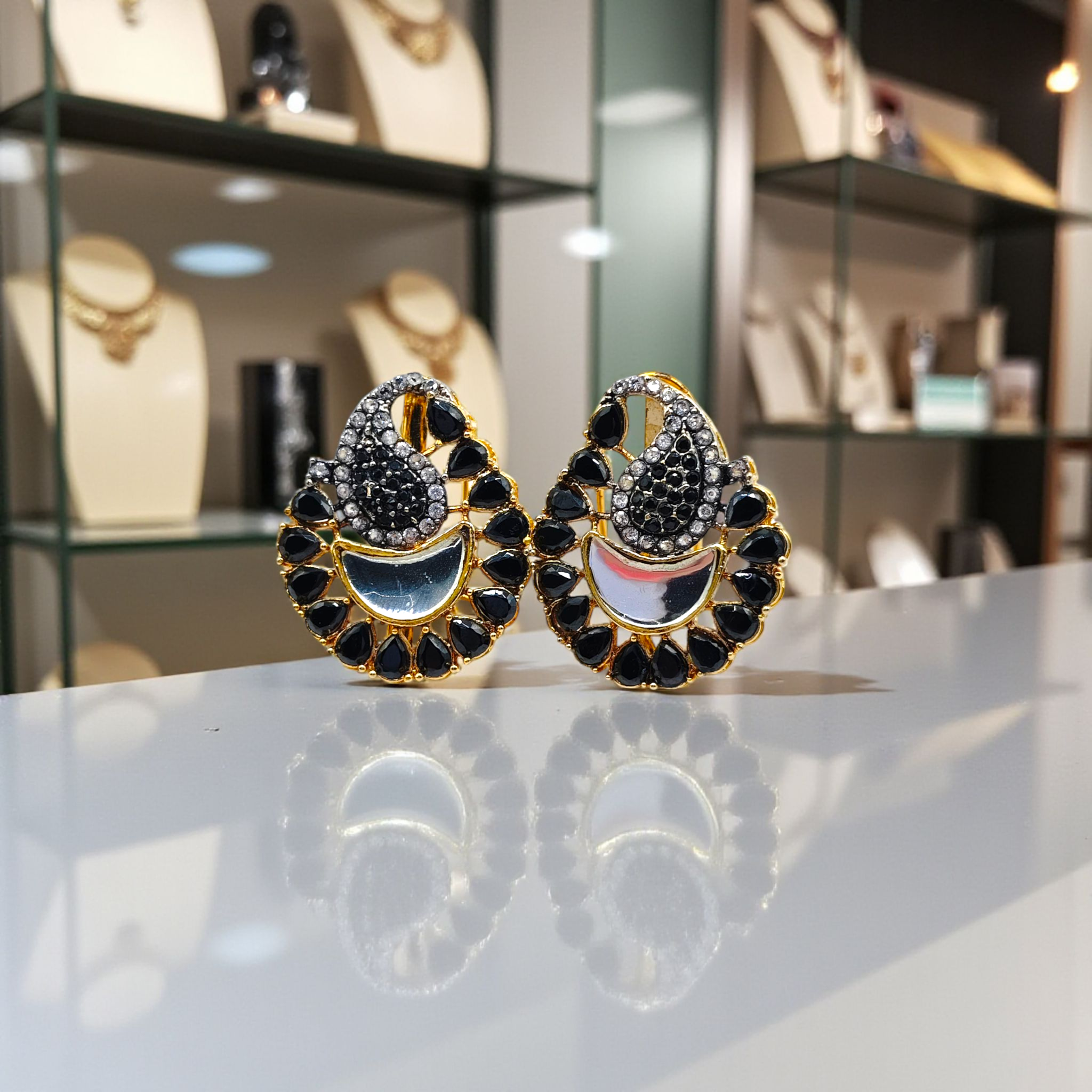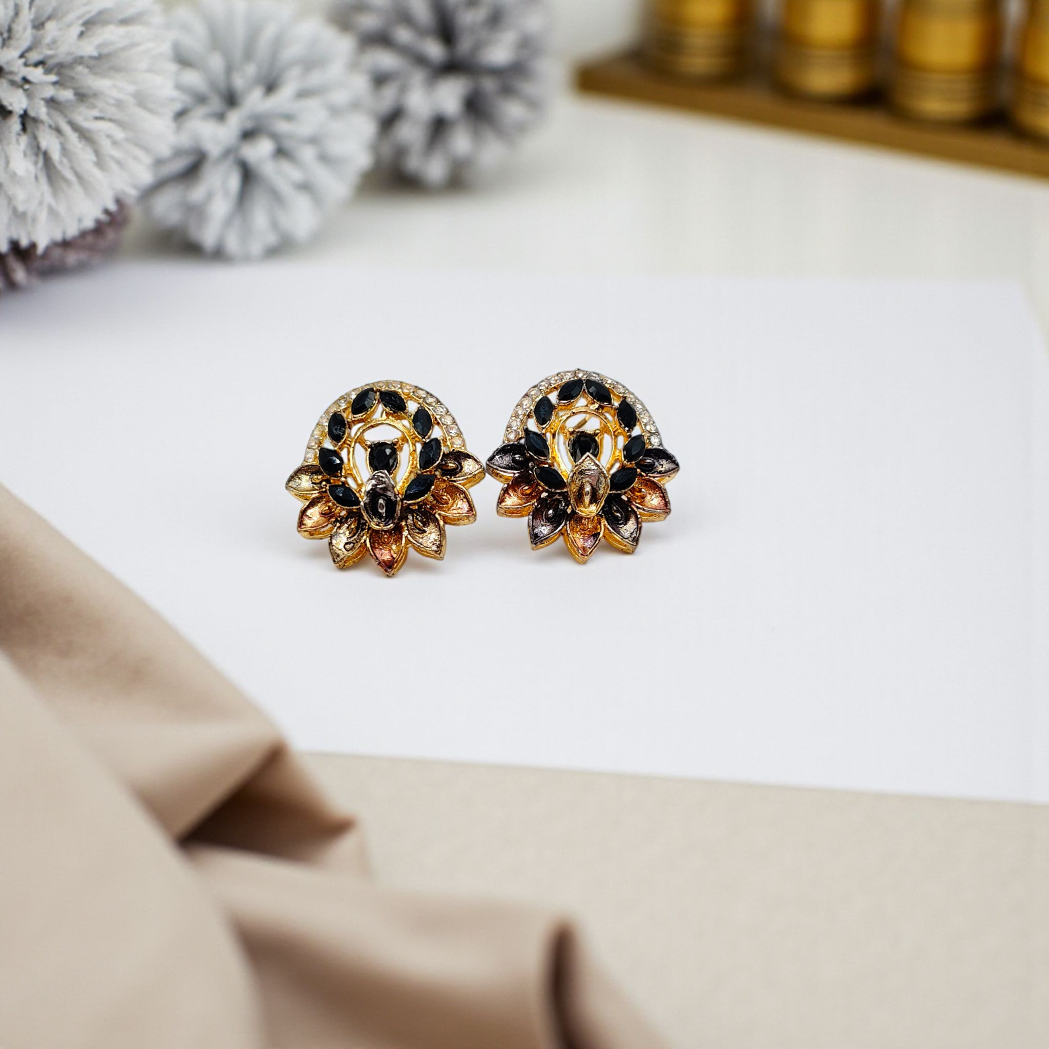Dome-shaped earrings encrusted with glittering golden stones for a luxe finish.