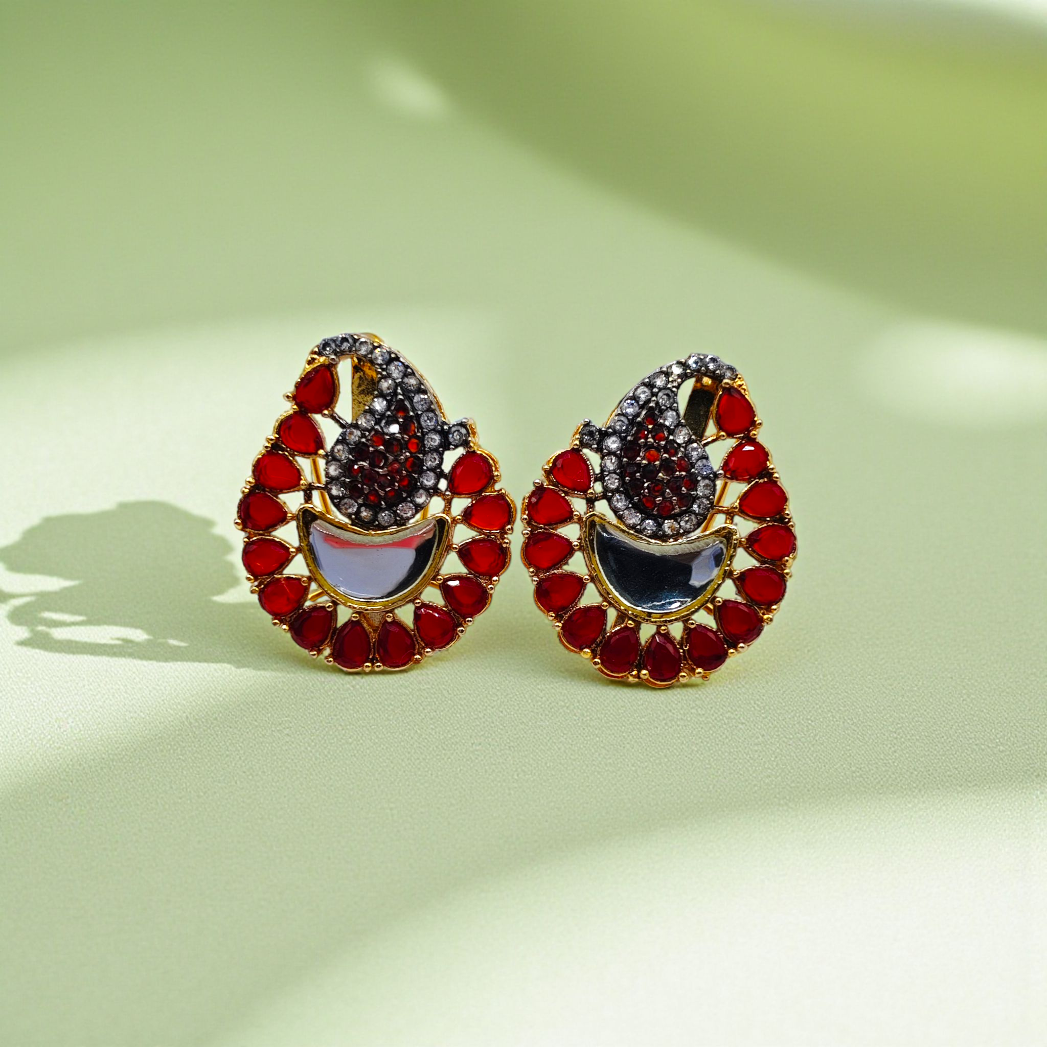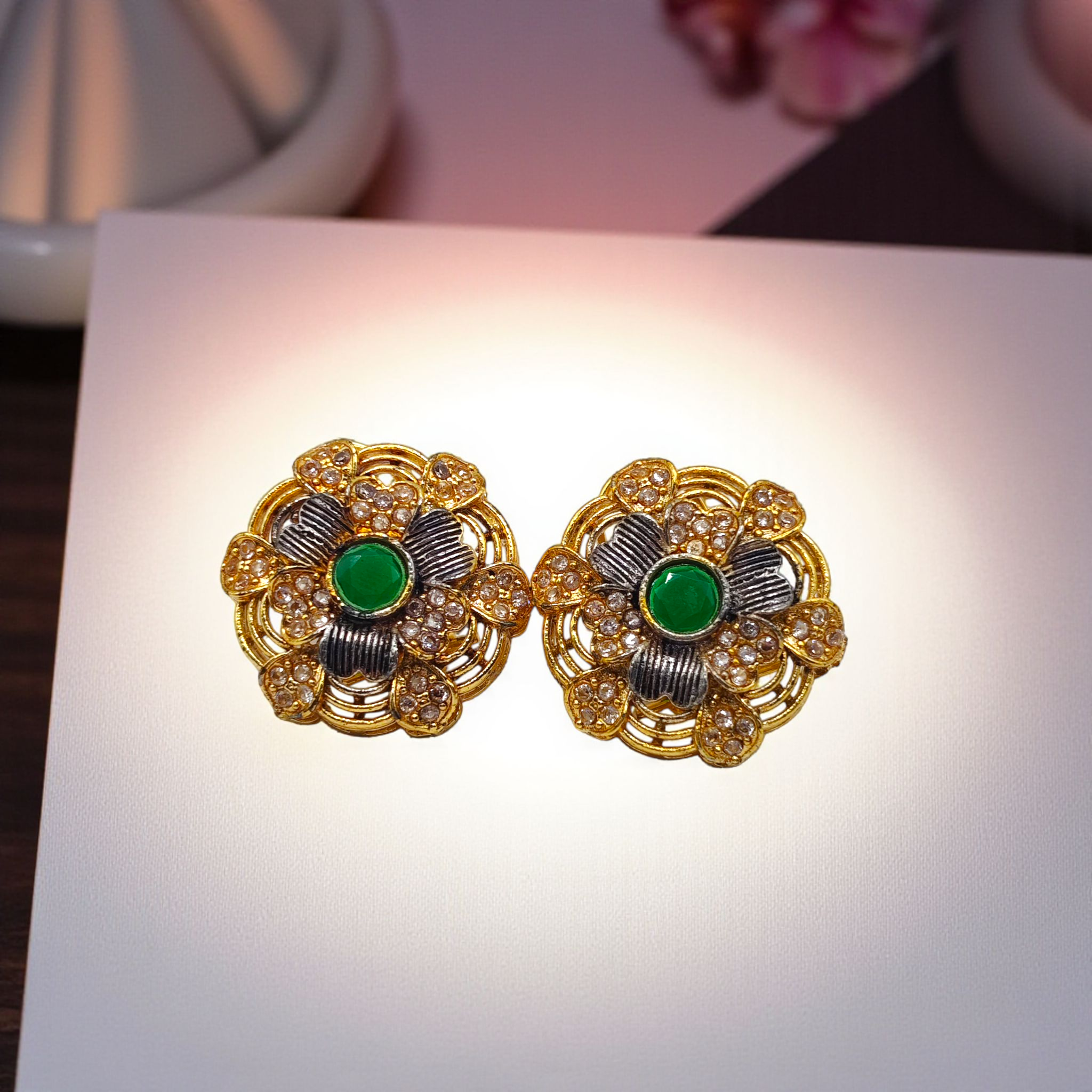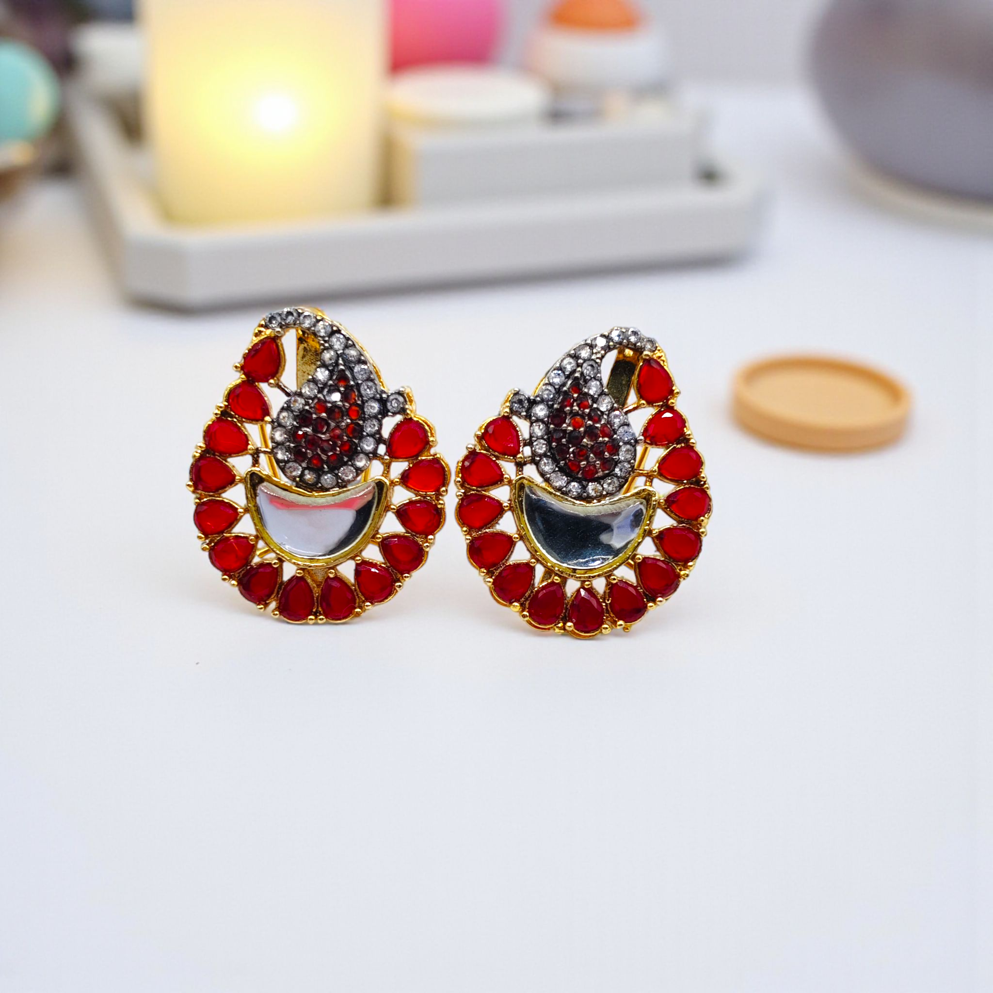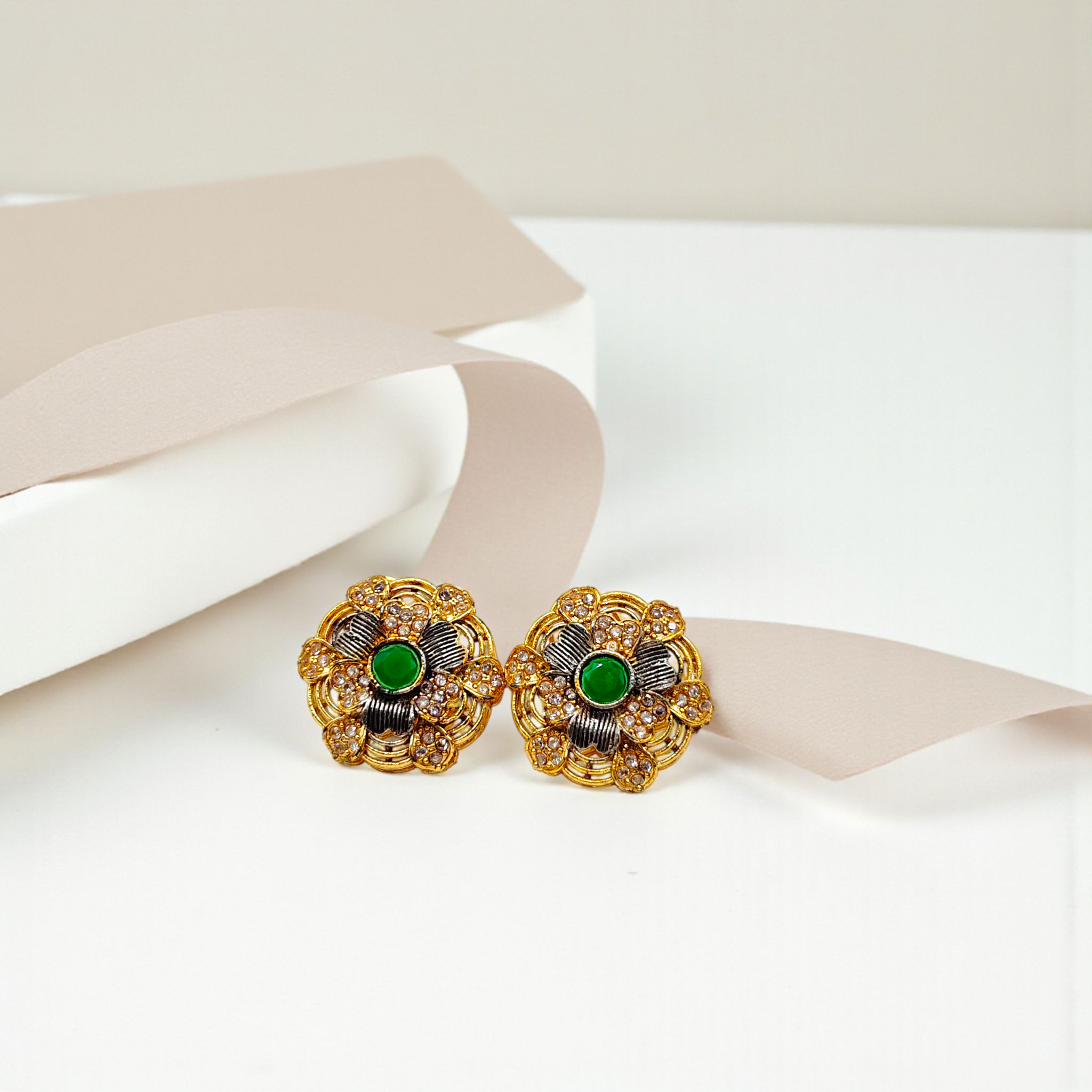 Dome-shaped earrings encrusted with glittering golden stones for a luxe finish.