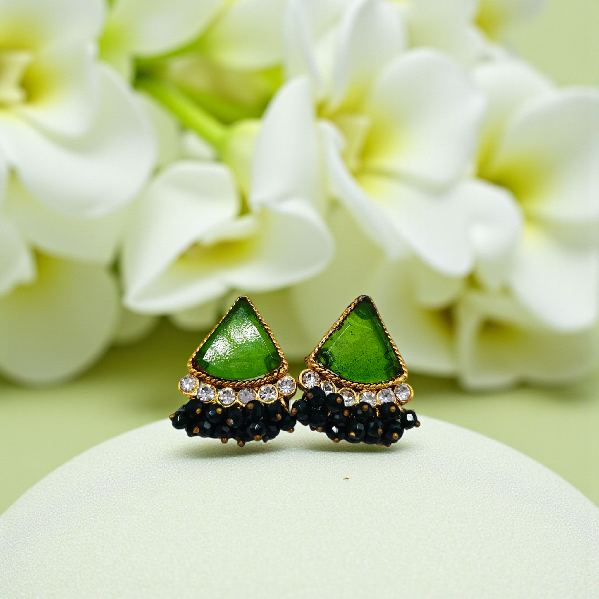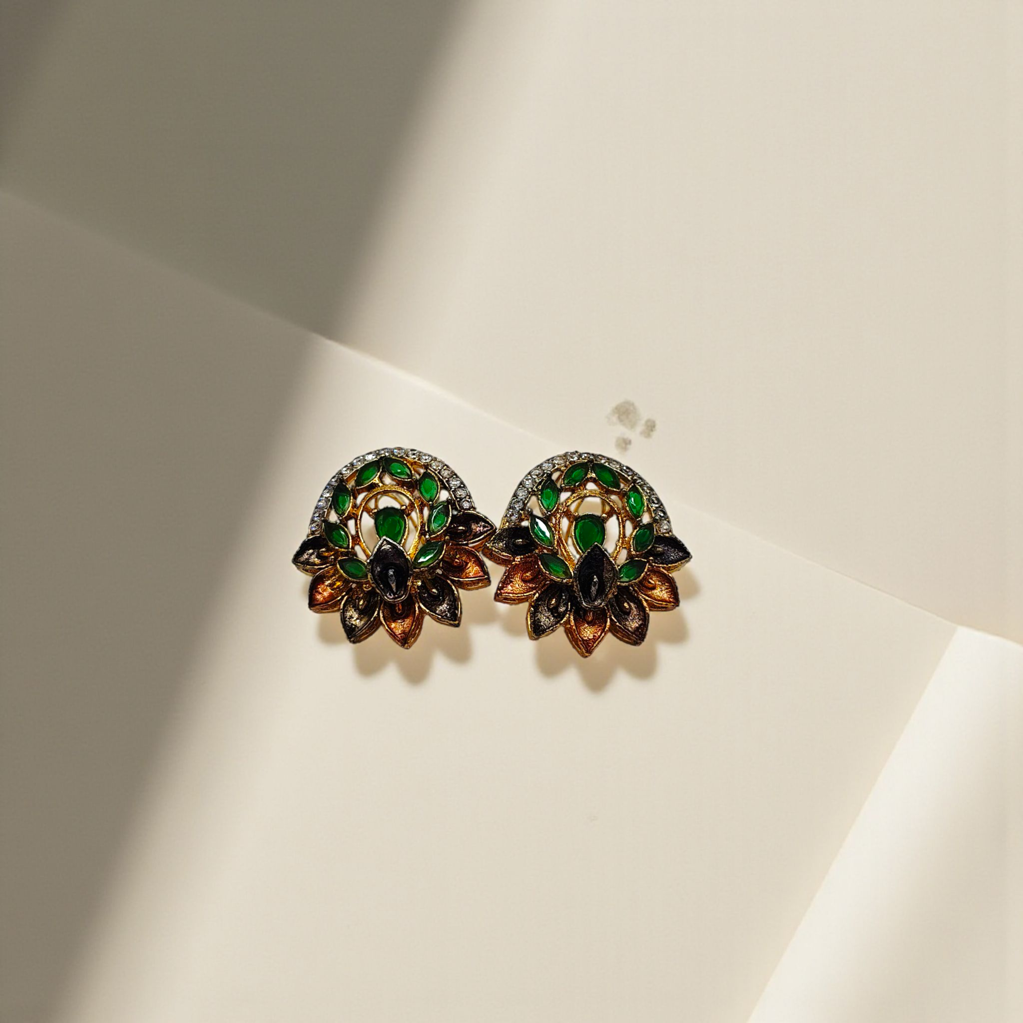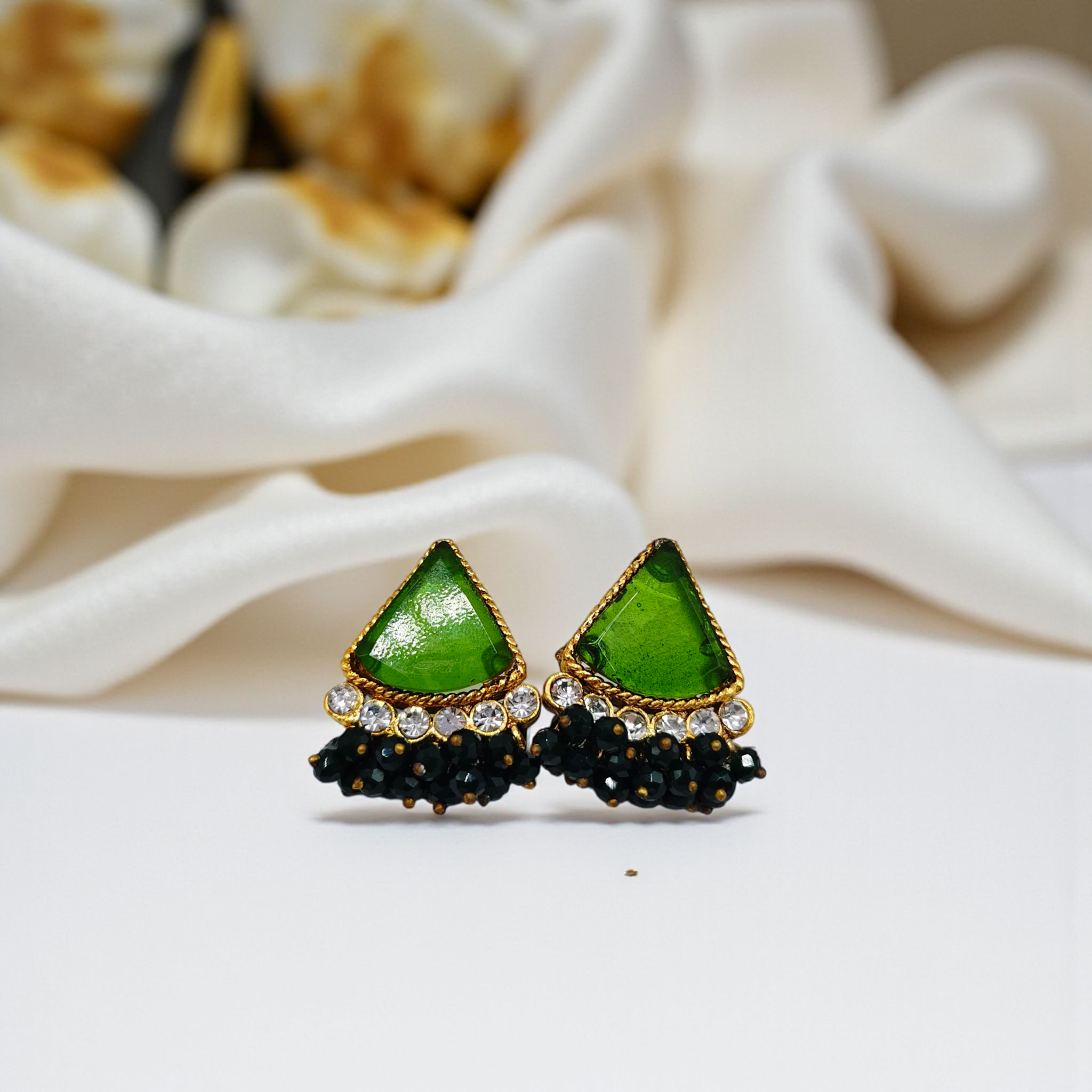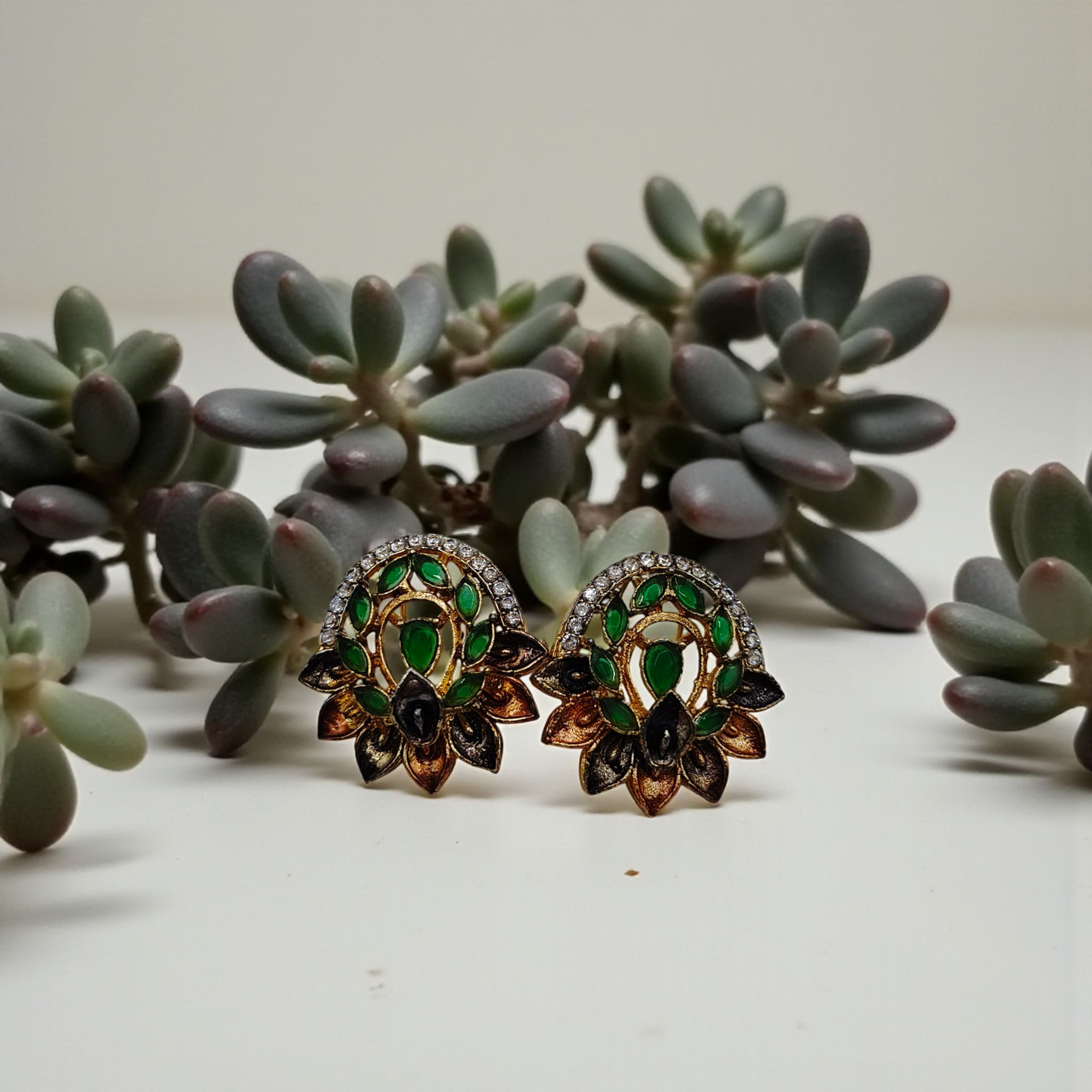 Dome-shaped earrings encrusted with glittering golden stones for a luxe finish.
