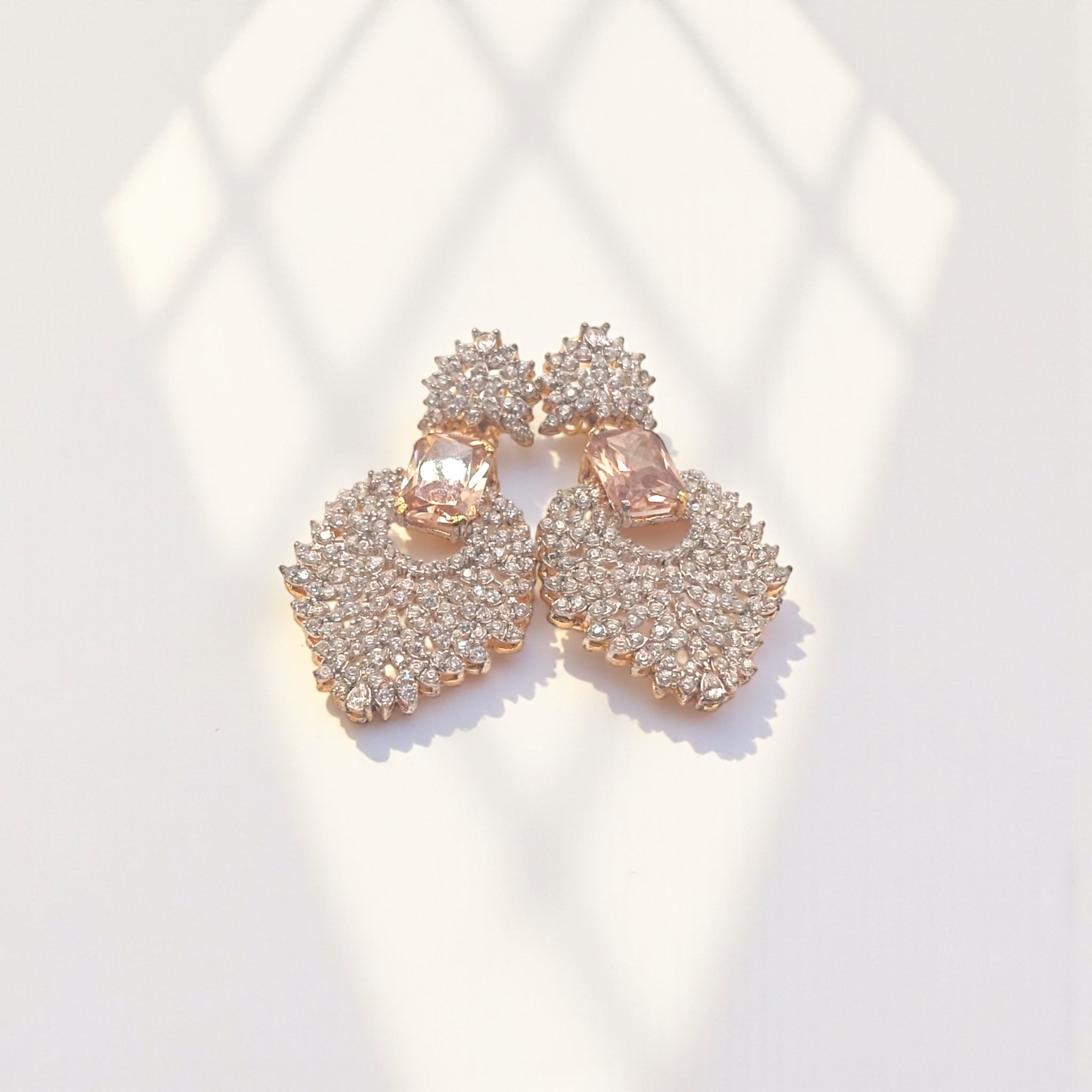 Stunning statement earrings featuring a brilliant central stone framed by layers of sparkling crystals. Perfect for weddings, evening parties, or any special occasion where you want to shine with elegance and glamour.