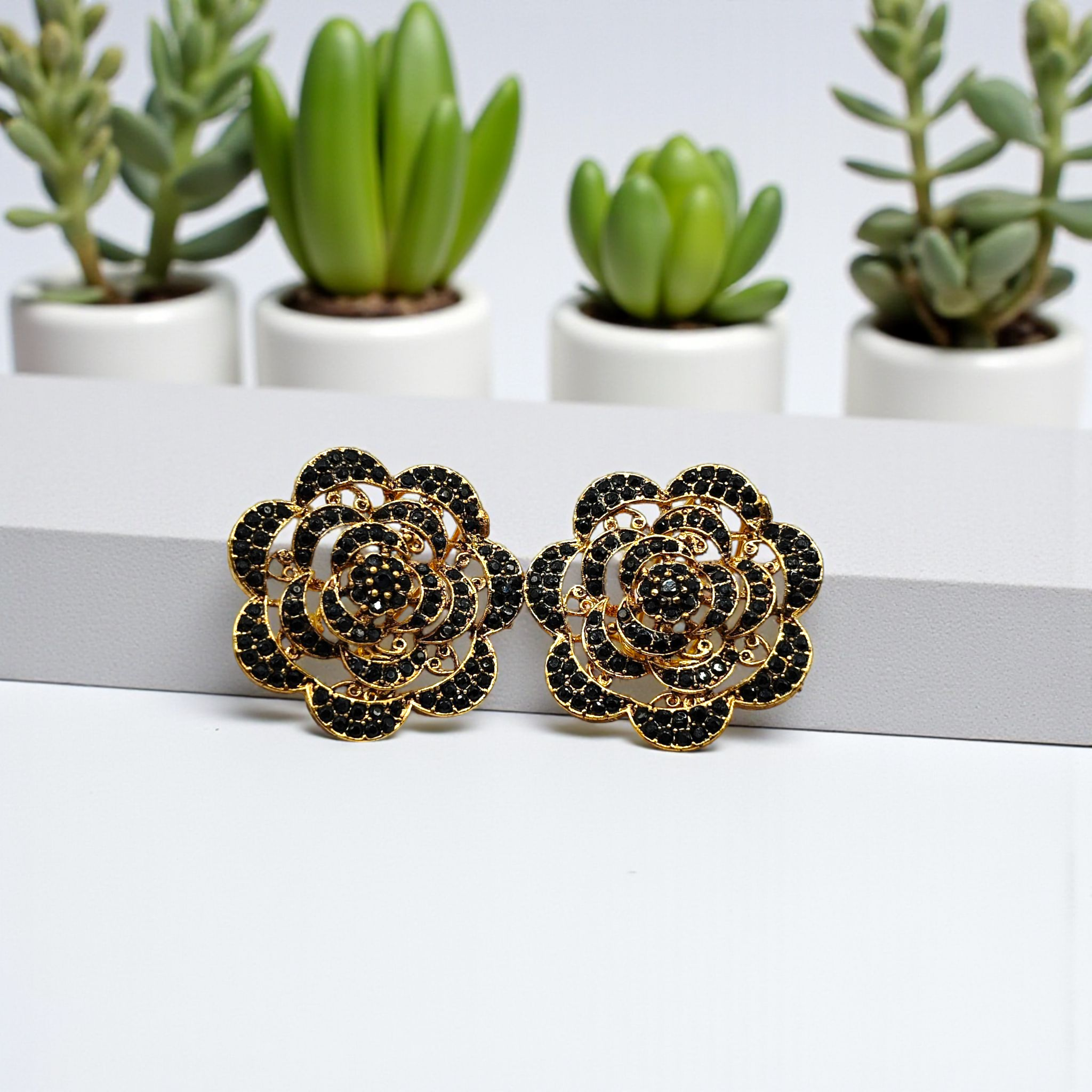 Deep blue center stones encircled with crystals for a royal-inspired finish.