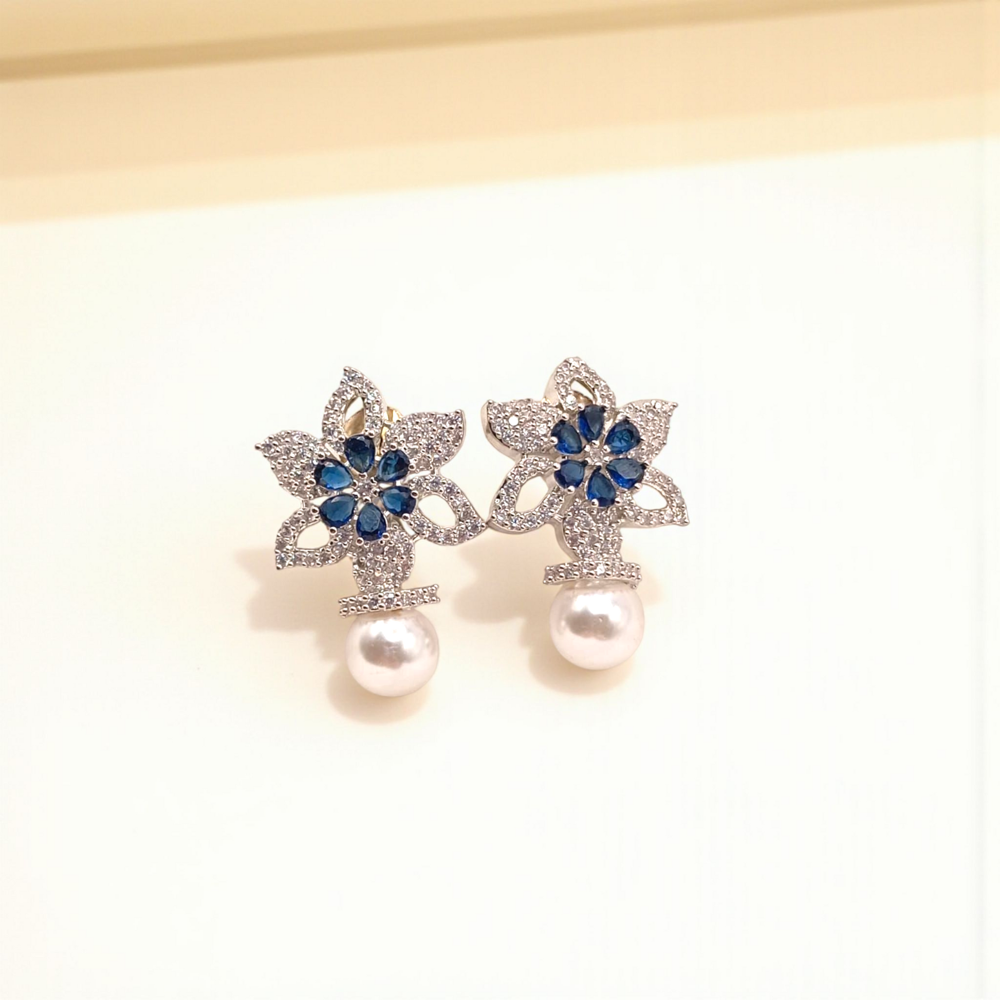 Elegant floral crystal earrings adorned with delicate mint accents and finished with a lustrous pearl drop. Perfect for weddings, parties, or adding a graceful touch to any outfit.